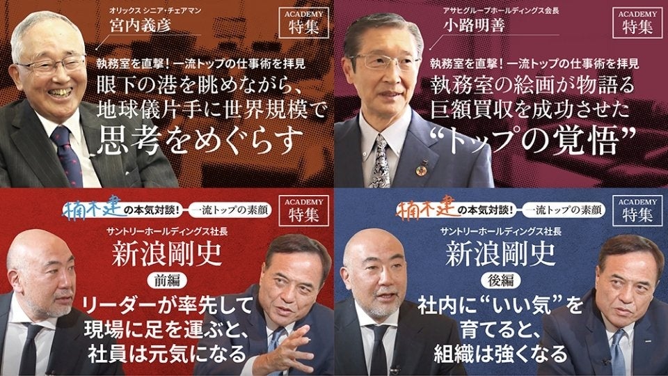 ・『執務室を直撃!一流トップの仕事術を拝見』 オリックス シニア・チェアマン 宮内義彦/オカムラ社長 中村雅行/アサヒグループホールディングス会長 小路明善