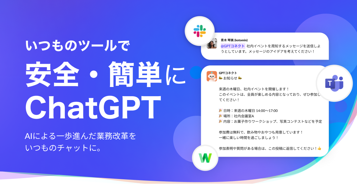 ※対象の社内チャットツール:Slack、Microsoft Teams、ほか順次追加予定です。