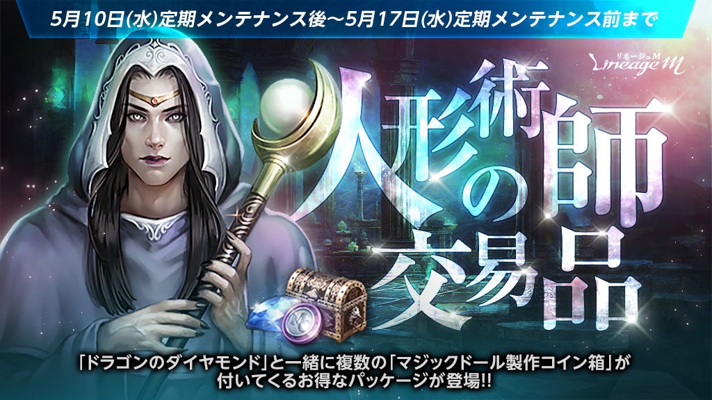 「ドラゴンのダイヤモンド」120個と一緒に、貴重なコレクション効果や特別な性能を持つマジックドールの製作材料として使用可能な「マジックドール製作コイン箱」5個が獲得できる「人形術師の交易品」が登場しました。