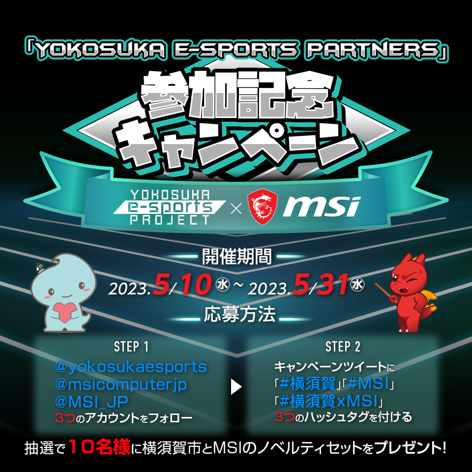 Yokosuka e-Sports Partnersへの参加を記念して、MSI公式Twitterアカウントでキャンペーンを行います。