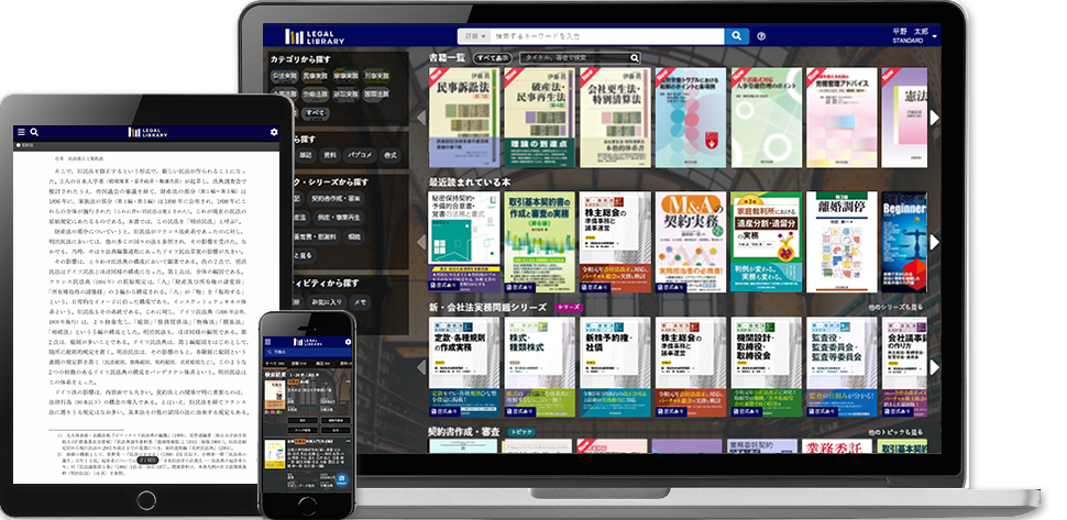 「LEGAL LIBRARY」は、信頼できる確かな法律書籍・雑誌や官公庁の資料、パブリックコメント等を1,500点以上にわたってデータベース化し、オンライン上から横断的に検索し、自由に閲覧することができるリサーチシステムです。