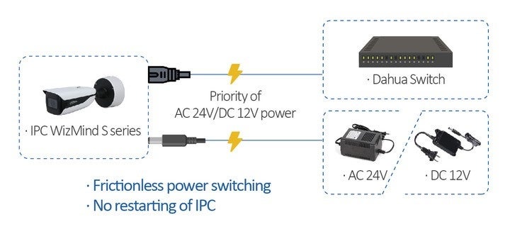 24時間365日の継続的な監視が不可欠な環境において、電源が不安定な場合でも、WizMind Sシリーズは二重電源機能により運用に柔軟性を持たせることが可能です。片方の電源に問題が発生してもカメラの継続安定性は担保されます。