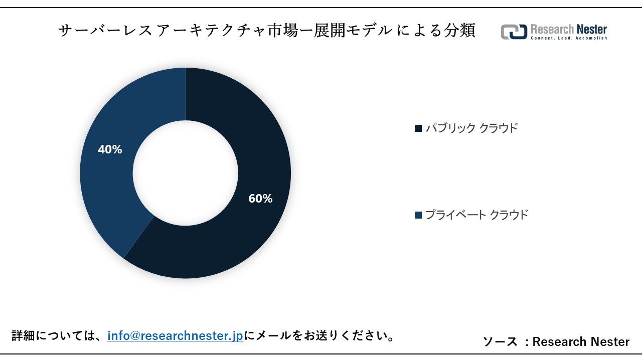 世界のサーバーレス アーキテクチャ市場も分割され、パブリック クラウドとプライベート クラウドへの展開モデルによって需要と供給が分析されます。その中で、パブリック クラウドは、予測期間中に大幅に成長すると推定されています。当社のサーバーレス アーキテクチャ市場調査によると、スケーラビリティ、可用性、手頃な価格の結果として、Amazon Web Services (AWS)、Microsoft Azure、Google Cloud Platform (GCP) などのパブリック クラウドがサーバーレス アーキテクチャに頻繁に選択されています。パブリック クラウド企業は R&D に充てられる資金が多いため、プライベート クラウド プロバイダーは最先端のテクノロジーへの同じレベルのアクセスを提供しない可能性があります。したがって、パブリック クラウドの需要は、サーバーレス アーキテクチャでより多くなっています。