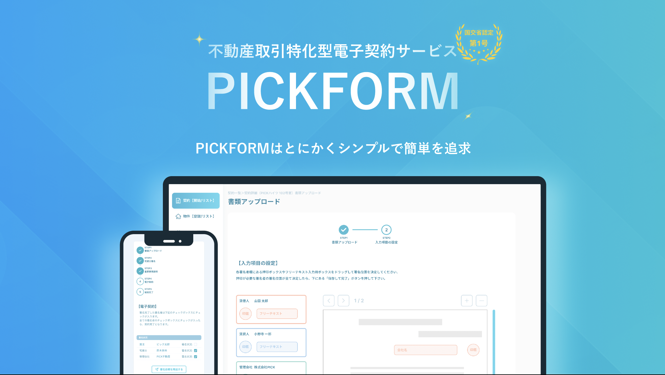 不動産取引に特化した、とにかくシンプルで簡単を追求した不動産取引特化型電子契約サービスです。