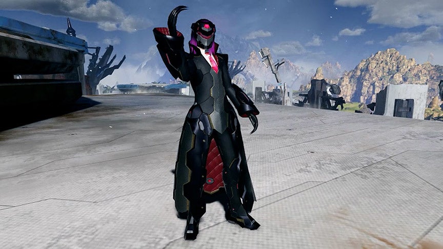 シーズナルポイント交換で入手できる「『PSO2』10周年SPスクラッチ券」で引けるスクラッチです。『PSO2』に登場したDF【仮面】とマトイの 『NGS』仕様のコスチュームが入手可能で、2人をモチーフとした武器迷彩は、カラーバリアント武器のようにエフェクトカラーが変更される「カラーバリアント対応の武器迷彩」になっています。