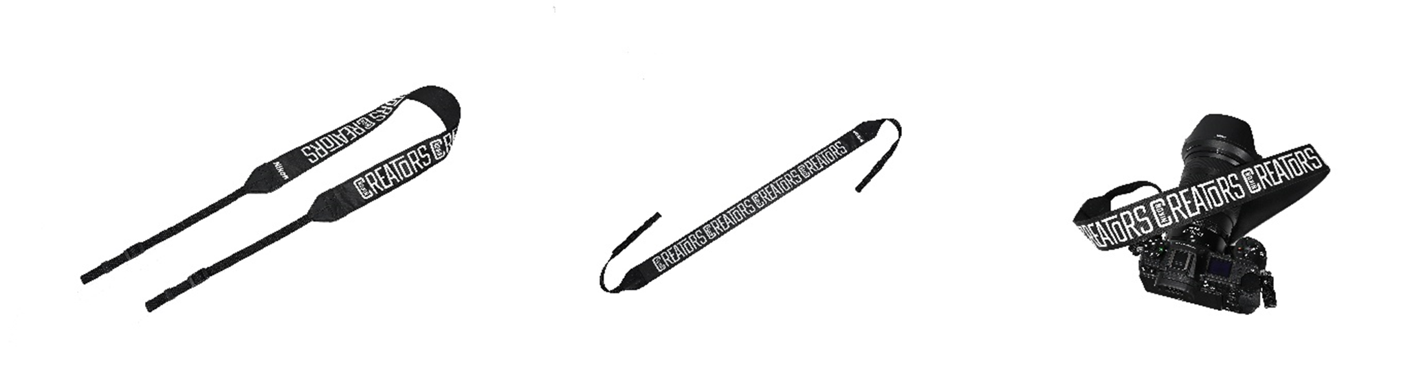 Nikon CREATORSのロゴ入りストラップ。ストラップの表面はジャガード織りを施しており、従来のNikonロゴストラップから一新されたデザインをお楽しみいただけます。