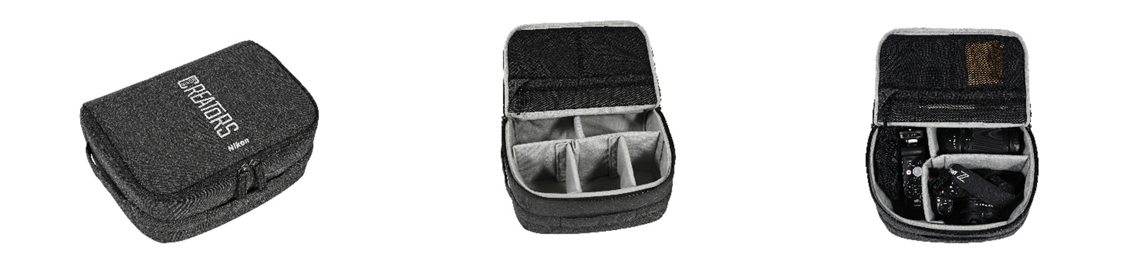 機能性が高く持ち運びに便利な本製品は、プロ向け・ハイアマチュア向けのカメラやレンズを複数収納でき、カードやクロス、小物を収納できるポケットを装備したNikon Z シリーズ専用のバッグインバッグです。