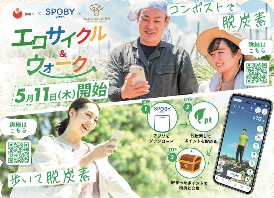 島根県雲南市にて、2023年5月11日(木)より当社が開発するエコライフアプリ「SPOBY」を活用し、市民の脱炭素活動を促進するプロジェクトを開始することを発表いたします。