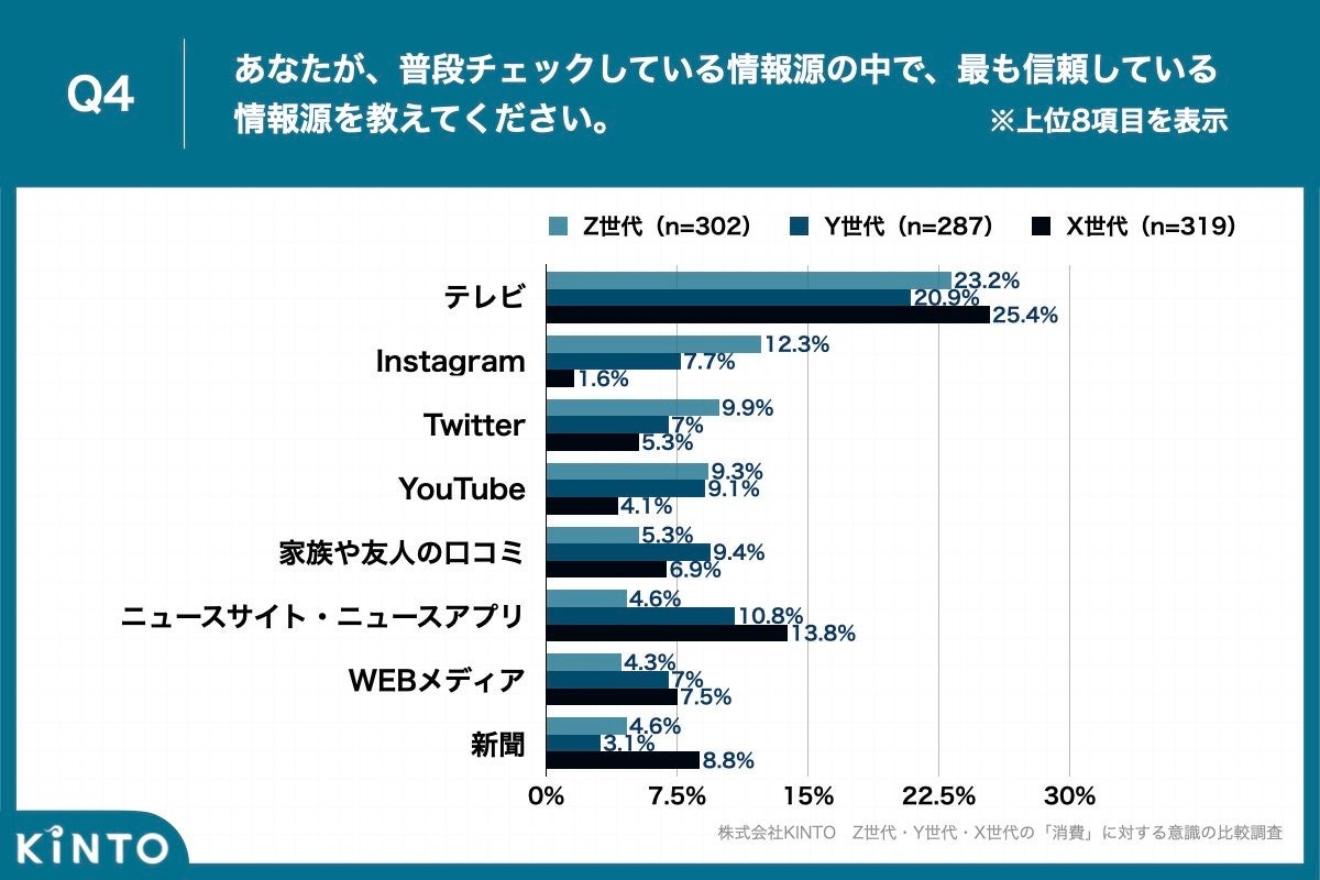 Q4. 最も信頼している情報源は全世代とも「テレビ」