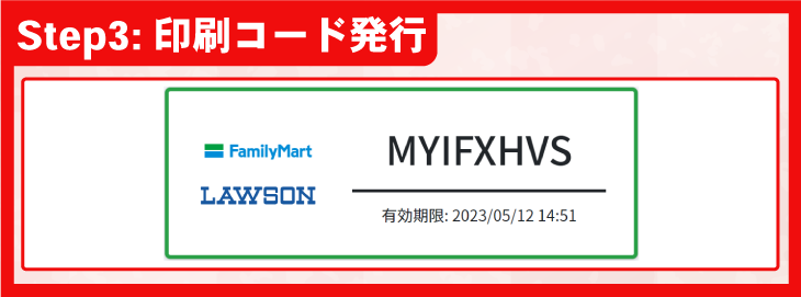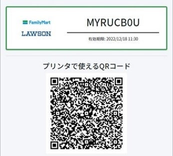 デザインとサイズの選択が完了したら、コンビニでの印刷に必要な印刷コード/QRコードが発行されます。この印刷コー/QRコードドを使って、コンビニでの印刷手続きをスムーズに行うことができます。