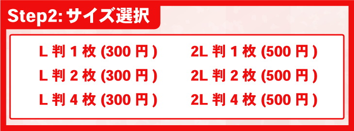 L判用紙は300円、2L判用紙は500円でご利用いただけます。
