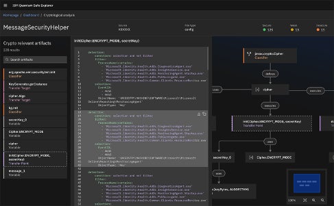 「発見」の段階向けに開発したのが、IBM Quantum Safe Explorerです。これは、ソースコードとオブジェクト・コードをスキャンして、暗号に関連するすべてのアーティファクトを表示し、その場所を特定し、依存関係を明らかにします。また、暗号化アーティファクトをカタログ化したコール・グラフを生成し、暗号の部品表(CBOM)( https://research.ibm.com/blog/cryptographic-bill-of-materials )としてまとめられた知識ベースを作成します。