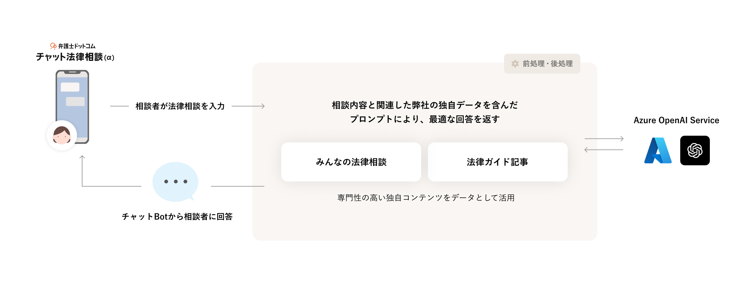 「弁護士ドットコム様が運営する『弁護士ドットコム チャット法律相談(α版)』によるAzure OpenAI Service の ChatGPT を活用した世界初のAI 法律相談チャットサービスの提供開始を大変喜ばしく思っております。 今回のチャット法律相談は、Microsoft Azure および Azure OpenAI Service を活用することで、より高度な技術とプライバシー保護・セキュリティ機能が提供され、誰もが気軽に法務相談ができる未来を実現するための一歩となるものと信じております。日本マイクロソフト株式会社は、弁護士ドットコム様が推進するプロフェッショナル・テックに共感し、今後も弁護士ドットコム様と連携しながら、より良いサービスを提供するために尽力してまいります。このAI法律相談チャットサービスが、多くの人々の生活に貢献することを期待しています」