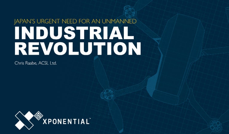 「JAPAN’S URGENT NEED FOR AN UNMANNED INDUSTRIAL REVOLUTION」と題したChrisのプレゼンテーションでは、日本におけるドローンを含めた無人システムの普及は、自然災害、インフラの老朽化、出生率の減少、都市部への人口集中、生活の高水準化の5つの要因によってけん引されていること、インフラ点検、災害対応、物流、農業などさまざまな用途でドローンを導入することが、日本の社会課題や地理的条件などの特有の条件下でいかに有利であること、そして、これらの用途を支える産業の発展を加速するために日本政府が行っていることを説明しました。