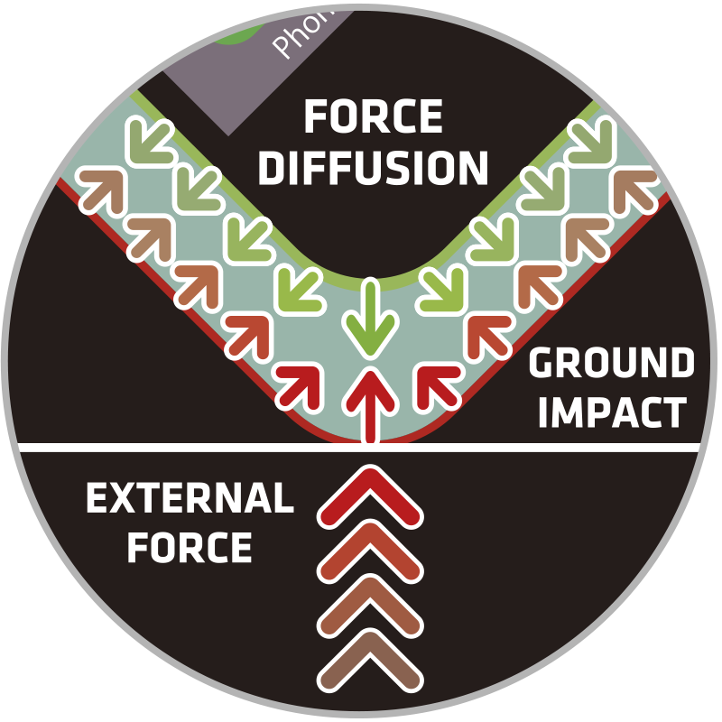本製品は、柔軟性と衝撃耐性の2種類の素材の組み合わせによってデザインされています。