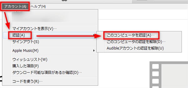 1.左上の「アカウント」>「認証」>「このコンピュータを認証」の順で選択します。