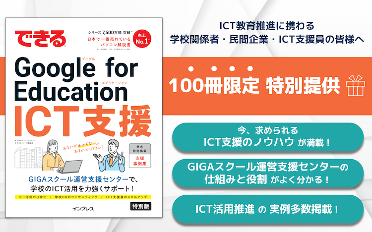 そこで、ICT支援についてさまざまな自治体から高い満足度を誇るストリートスマート(所在地:大阪府大阪市北区、代表取締役:松林 大輔)が、ICT支援のノウハウを詰め込んだ「できる Google for Education ICT支援(特別版)」を制作しました!
