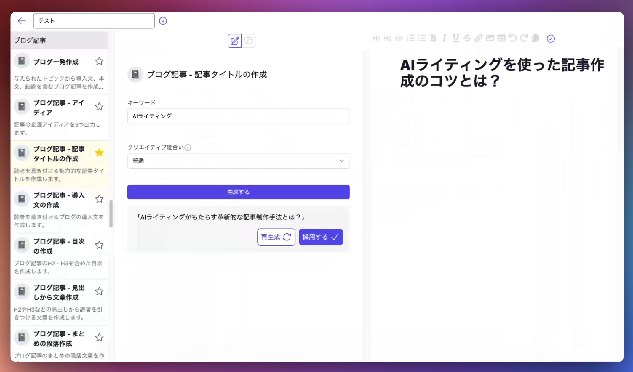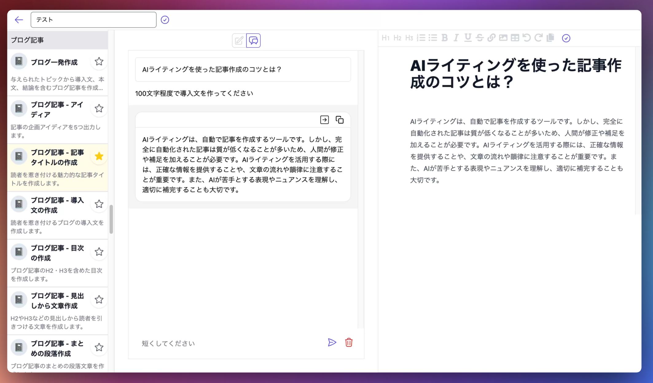 これにより、記事などの長文コンテンツの作成スピードを向上させ、コンテンツの質と量を確保することが可能となります。