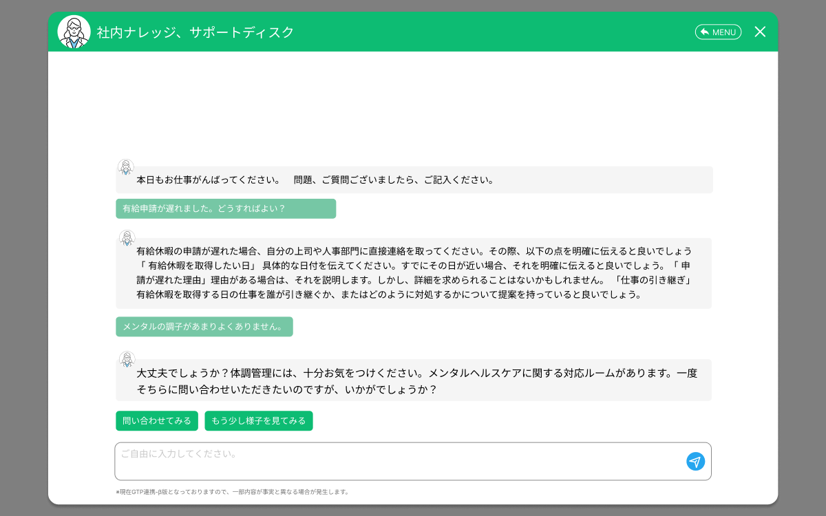 これにより、社内の文章検索、社内FAQ、ヘルプデスクの一括化が可能です。