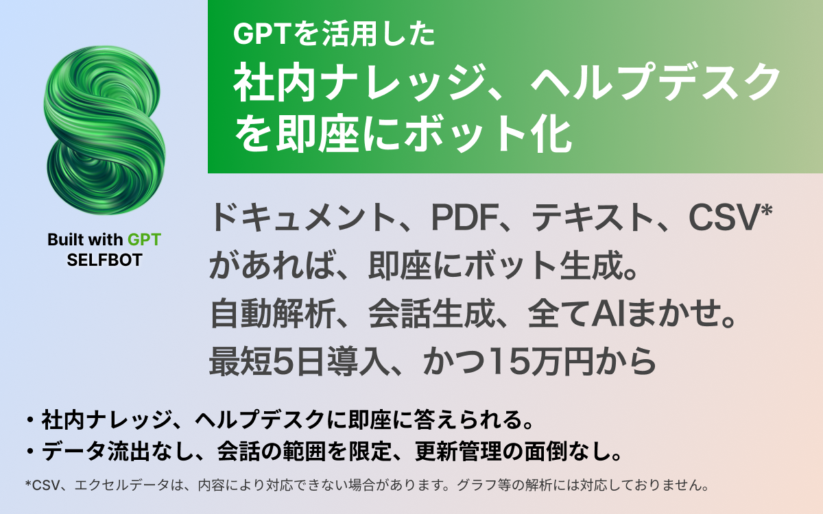■ セミナーも開催中:「ChatGPT連携の『SELFBOT』企業活用セミナー」