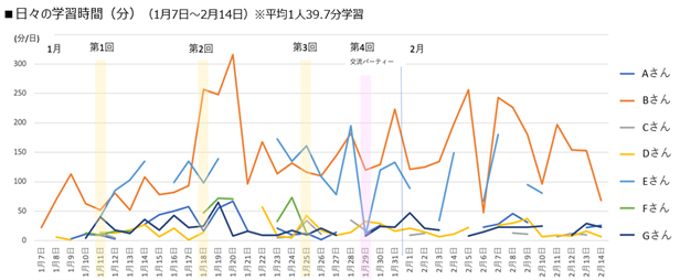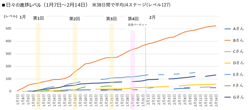・参加者各人の元々持っていたスキルや知識の違いもあり、進み方には個人差があったものの、参加者同士が徐々