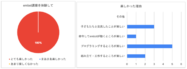 ・プログラム動作を考え意見交換し、アプリでプログラミング、ダンボールロボット(embot)を動かす