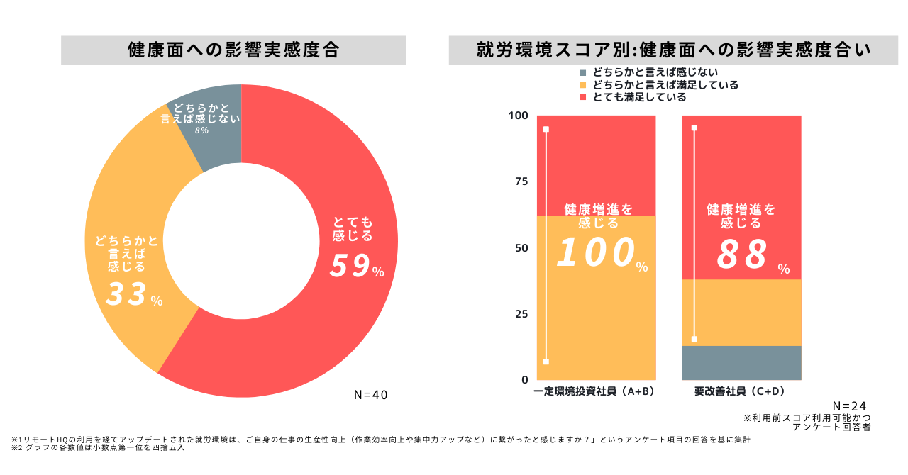 ※4「リモートHQの利用を経てアップデートされた就労環境は、ご自身の心身の健康(姿勢改善/肩凝り/腰痛/リフレッシュ等)に繋がったと感じますか?」というアンケート項目の回答を基に集計