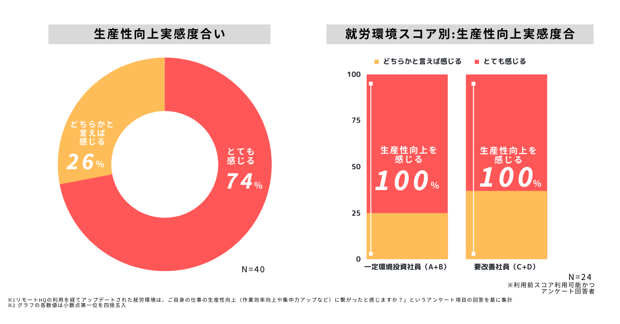 ※2 リモートHQの利用を経てアップデートされた就労環境は、ご自身の仕事の生産性向上(作業効率向上や集中力アップなど)に繋がったと感じますか?」というアンケート項目の回答を基に集計