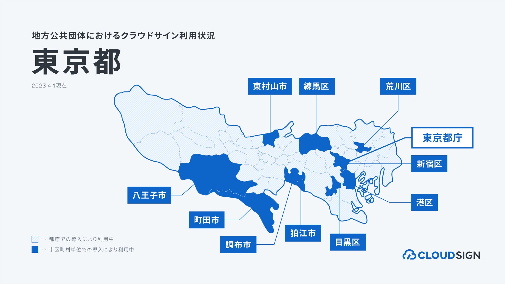 本共同調達の参加団体は、港区、新宿区、目黒区、荒川区、練馬区、八王子市、調布市、町田市、東村山市、狛江市、ほか計11団体。各団体における電子契約サービスの運用開始時期は、一部の団体を除き2023年7月頃を予定しております。