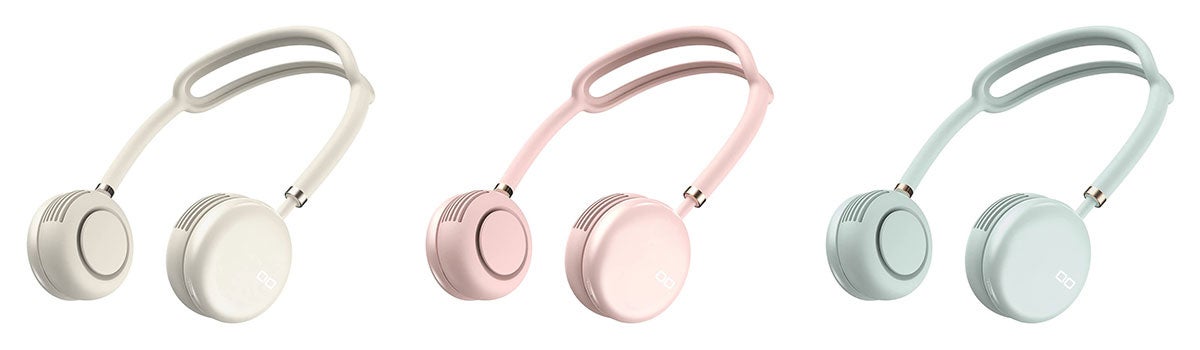 ファッショナブルなハンズフリーポータブルファン。髪の毛を巻き込みにくい羽なし設計。