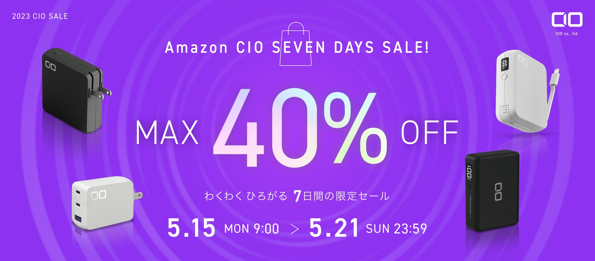 モバイルバッテリー「SMARTCOBY」、GaN対応急速充電器「NovaPort」などを展開する株式会社CIOは、Amazon「CIO SEVEN DAYS SALE」に向け、売れ筋人気製品を最大40%OFFにて販売いたします。