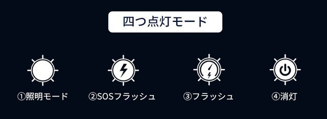 電源ボタンを連続2回押しするとライトが点灯し、懐中電灯代わりに暗がりをしっかり照らしてくれます。ハイキング、キャンプなどのアウトドアに、災害で停電になったときに、とっても役に立ちます。突然の災害時、SOS信号も出せます。