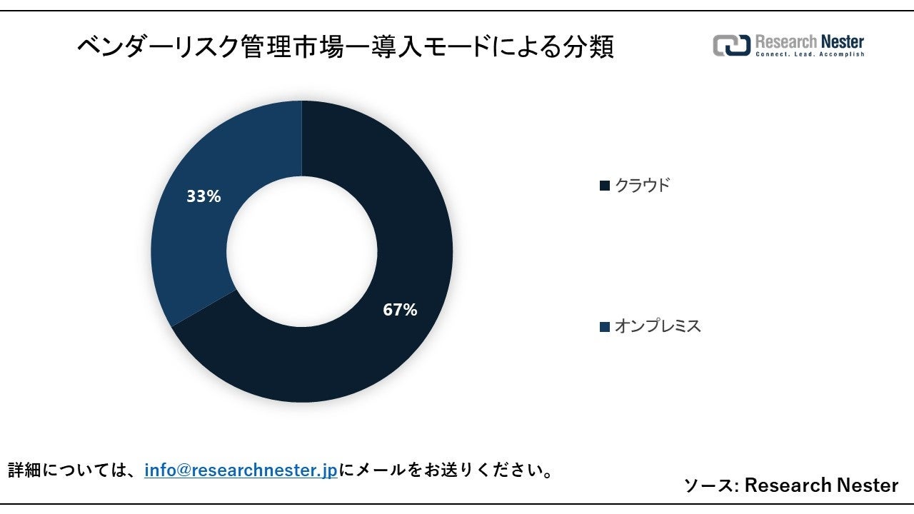 当社のベンダーリスク管理市場調査によると、市場は、クラウドとオンプレミスへの導入モード別にセグメント化され、需要と供給が分析されています。2 種類のベンダー リスク管理のうち、クラウド セグメントは 2035 年に最大約 34% の最大の市場シェアを獲得すると推定されています。このセグメントの成長は、柔軟で手頃な価格、スケーラブルなクラウドベースの VRM システムの可用性によるものと考えられます。協力の有効性、IT システムの管理と保守に関連するコストの削減、アップグレードによる持続可能性、品質管理は、クラウド コンピューティングのさらなる重要な利点です。最近、多くの企業がクラウドベースの VRM ソリューションを提供し始めており、これにより今後数年間で市場の成長が促進されると予測されています。