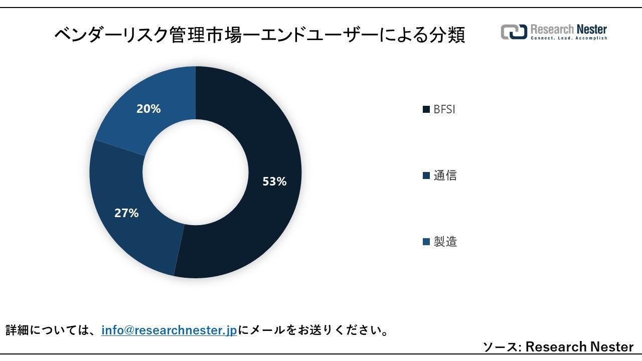 世界のベンダーリスク管理市場も、エンドユーザー別に需要と供給をBFSI、通信、製造に分割して分析しています。これら 3 つのセグメントのうち、BFSI セグメントは 2035 年に大きなシェアを獲得すると予想されます。当社のベンダーリスク管理市場調査によると、急速に成長するサードパーティ統合、リンクされたデバイス、オンライン バンキング、および迅速な取引の需要により、BFSI 業界は高度に相互接続されたセクターとなっています。相互接続の増加により、サイバーセキュリティに関するさらなる問題が生じます。金融サービス情報共有分析センター (FS-ISAC) は、2022 年に金融機関に対するサイバー攻撃が増加すると予測しています。同機関は、2022 年に金融機関にとって最も重大なサイバー危険は引き続きサードパーティ リスク、ゼロデイ脆弱性、ランサムウェアになると予測しています。その結果、今後数年間でこの分野の成長に向けた多くの機会が生まれることが予想されます。