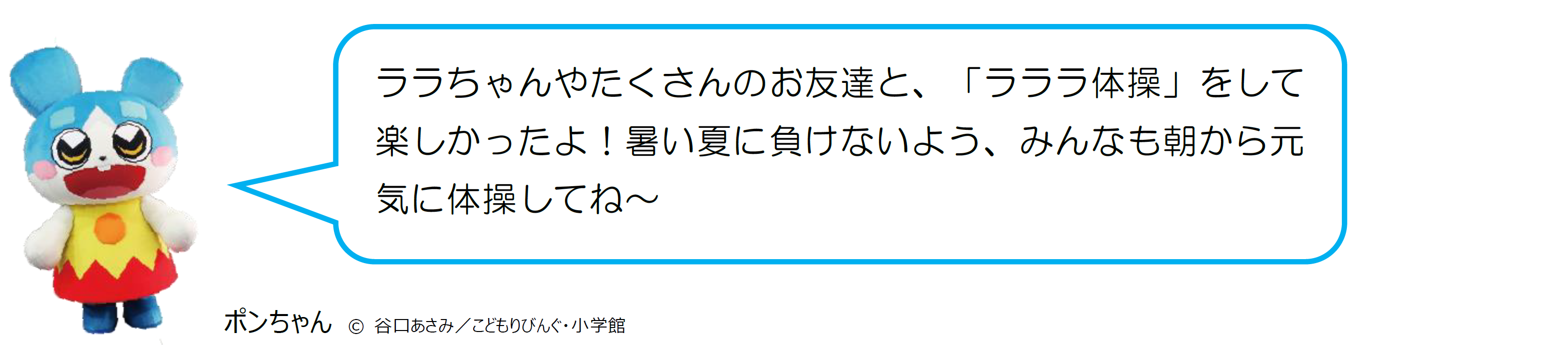 - 毎朝のラジオ体操ならぬ「ラララ体操」でお子さまの元気な夏休み生活を応援