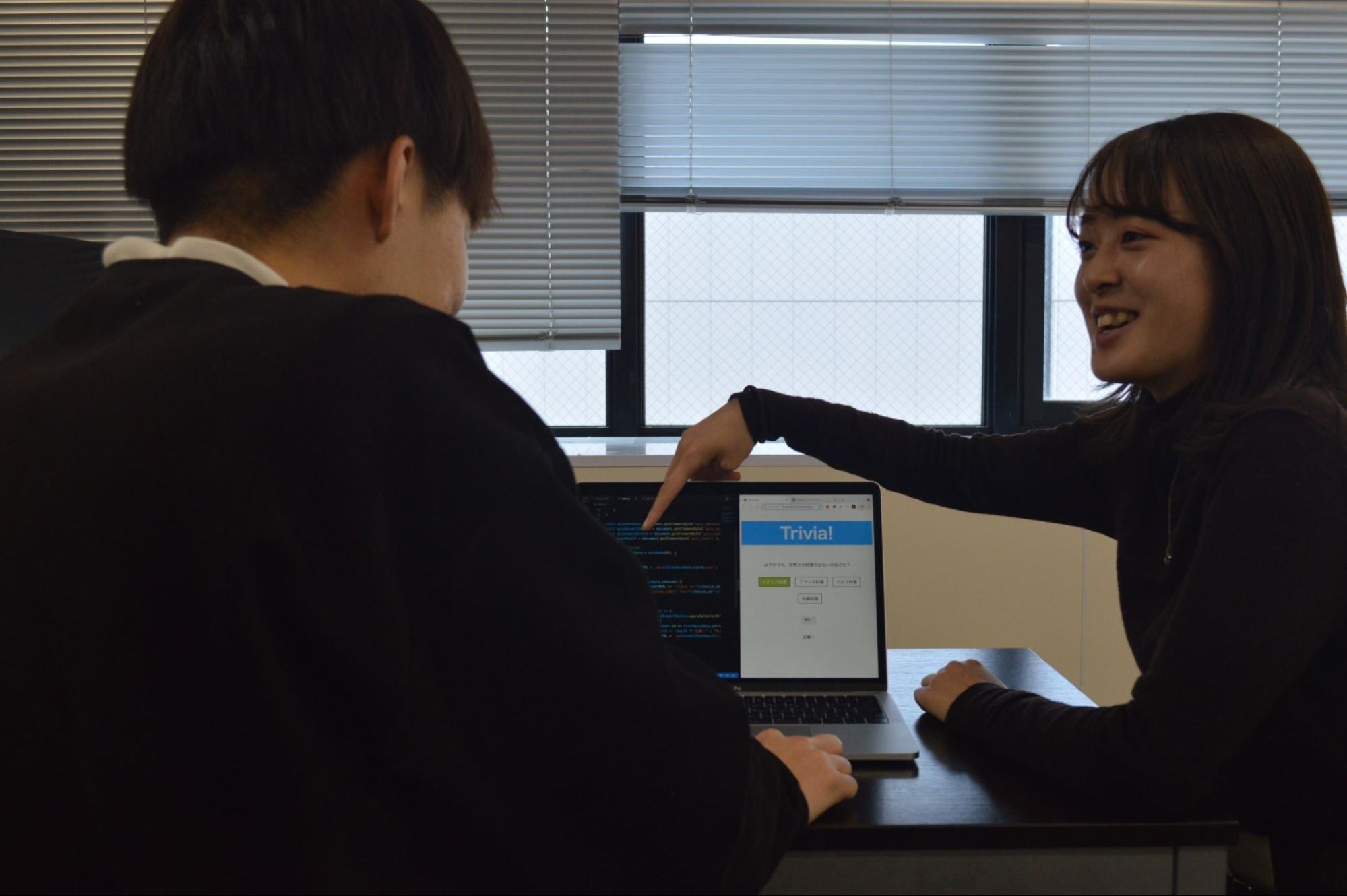 3ヶ月間にわたって週に2回、プログラミングの授業を提供しています。修了時に習得できるのは、簡単なゲームやサイトを自力で制作できるスキルです。初心者が挫折しやすいポイントを踏まえて一人ひとりの学習をサポート。オンラインのコミュニケーションツールにはSlackで教室以外での学習で行き詰まったときに講師に質問、相談できる環境を整え、高校生の「自ら学ぶ力」に伴走しています。