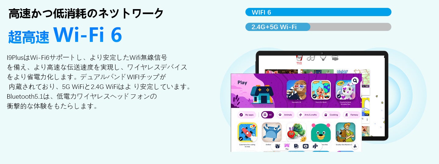 BMAX I9Plus タブレットは WiFi6 モードをサポートしています。 2.4G / 5GデュアルバンドWiFi接続、タブレットのプロフェッショナルWiFiバージョンをサポートし、さまざまな接続方法に適応します。 WiFiへのより便利で高速な接続を提供できます。 使いやすく、タブレットがもたらす無限の楽しみをお楽しみください。