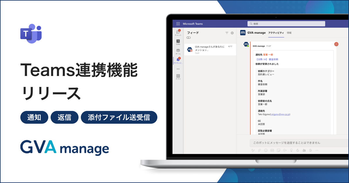 この法務部・事業部担当の課題を解決するために、GVA manageのTeamsアプリを提供することにいたしました。