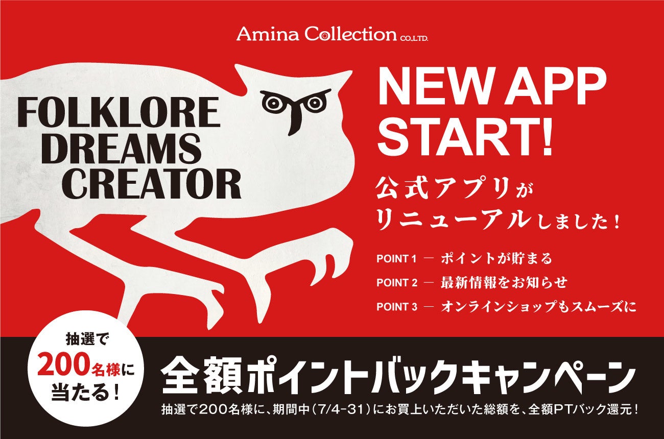 アミナコレクション公式アプリのリニューアルを記念して、期間中にお買上いただいた総額を抽選で200名様に全額ポイントバックするキャンペーンを実施いたします。
