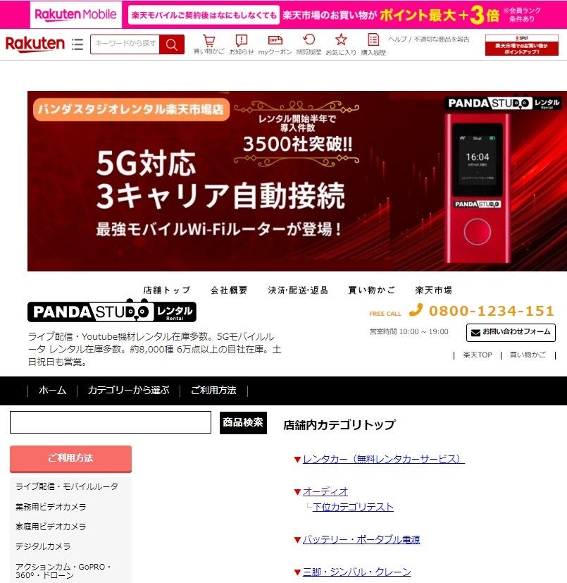 株式会社PANDASTUDIO.TVが運営するパンダスタジオレンタル(https://rental.pandastudio.tv/)は、動画撮影関連機材、配信用通信機器から、一般家庭用の調理器具、美容家電まで、約60,000点もの豊富な商品ラインナップでお客様の要望にお応えしています。