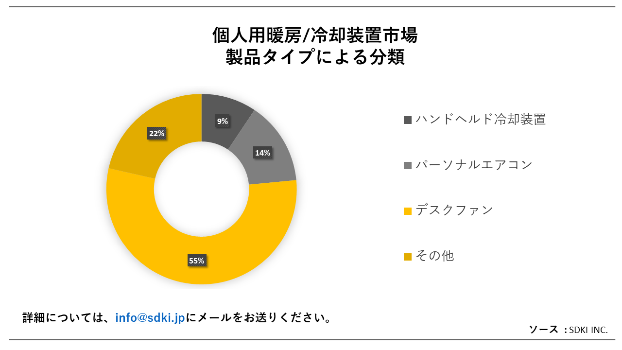 質問:個人用暖房/冷却装置市場の主な分類は何ですか?