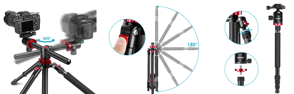 【丈夫な構造と超安定性】アルミ合金製で、直径25mmのチューブで作られるので、耐久性がよくて丈夫です。逆転インストールでも、最低角度撮影、マクロ撮影、パノラマ撮影を実現できます。