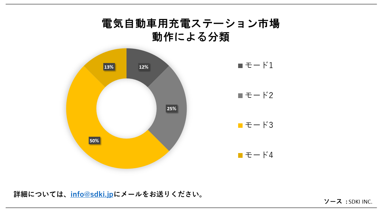 動作に基づいて、モード 3 のサブカテゴリーが予測期間終了までに最大の市場シェアを占めると思われます。モード3充電ステーションは主に公共の場に設置され、住宅用ではほとんど使用されていません。公共の充電ステーションにおけるモード3充電のためのインフラへの投資が、市場を牽引すると予想されます。2025年までに、欧州連合(EU)に999999基以上の公共充電ステーションを設置する必要があると推定されています。さらに、電力会社と自動車メーカーとの提携により、充電ステーションのネットワークが構築される予定で す。