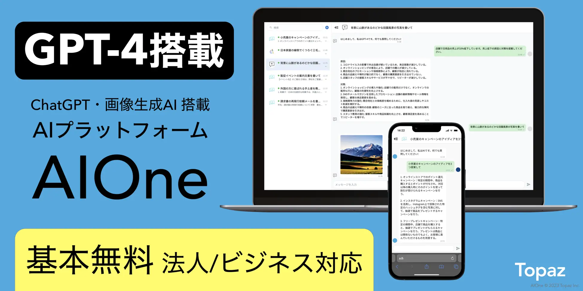 日本語8万文字対応「Topaz Pro AI」搭載「ビジネスAI」公式ウェブサイト