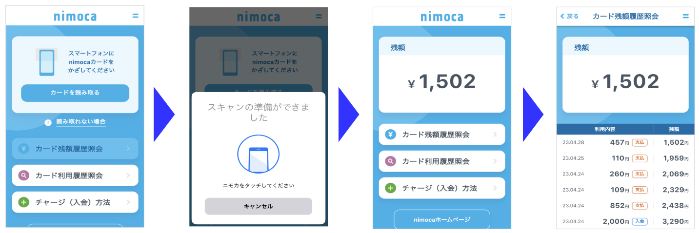 お客さまのスマートフォンで、残額や利用履歴を簡単に確認いただけます。