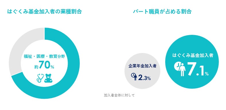 世の中の企業年金加入者のうち、非正規雇用は2.3%であるのに比べ、はぐくみ基金は多くのパート職員の方々が加入