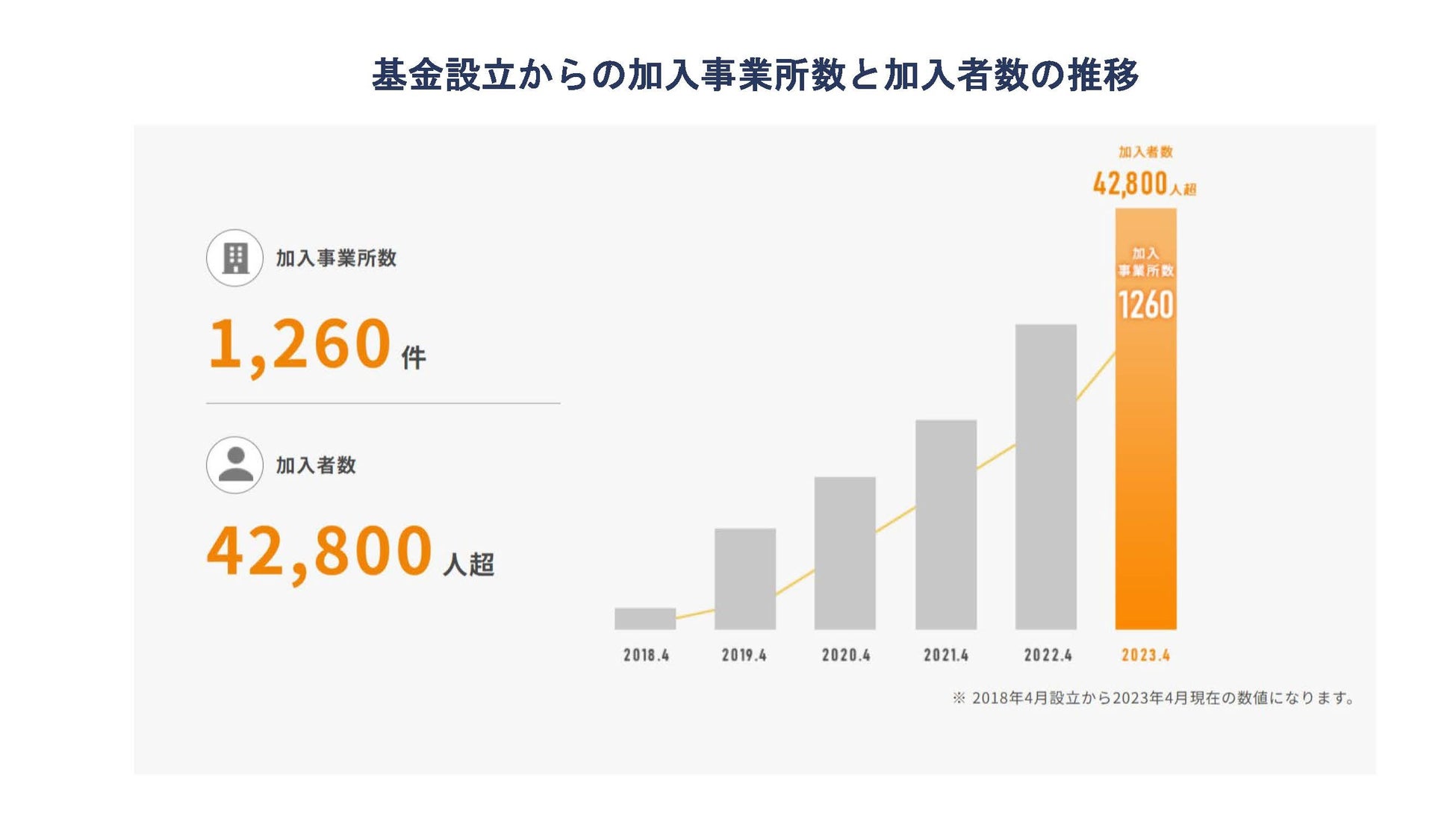 ​​▶設立から5年で加入者は4.2万人を超え、平均加入率は65.2%。多くの従業員の方々から支持をいただいています
