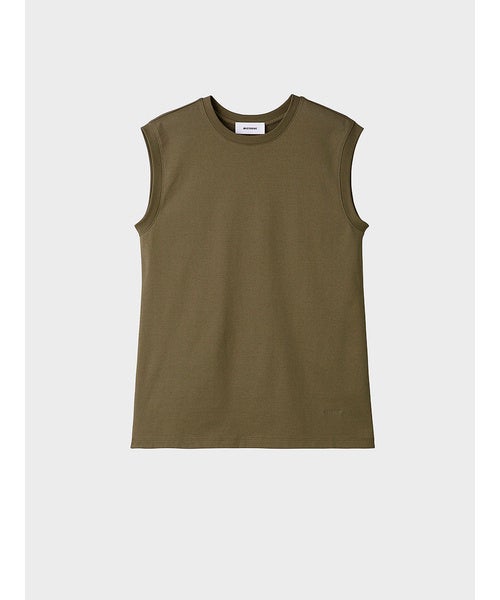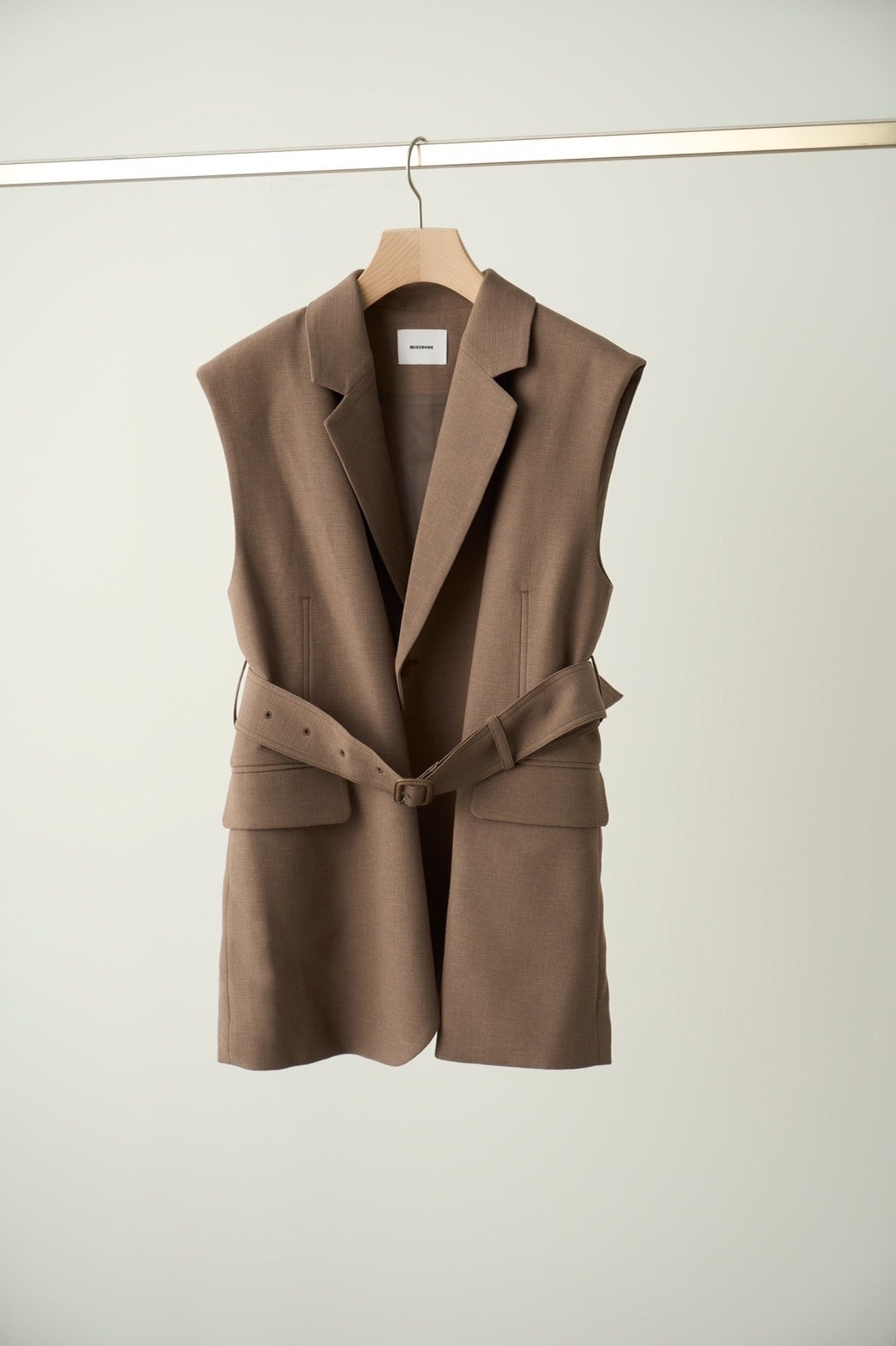 リラックスできる程よいサイズ感のノースリーブテーラードジャケット。