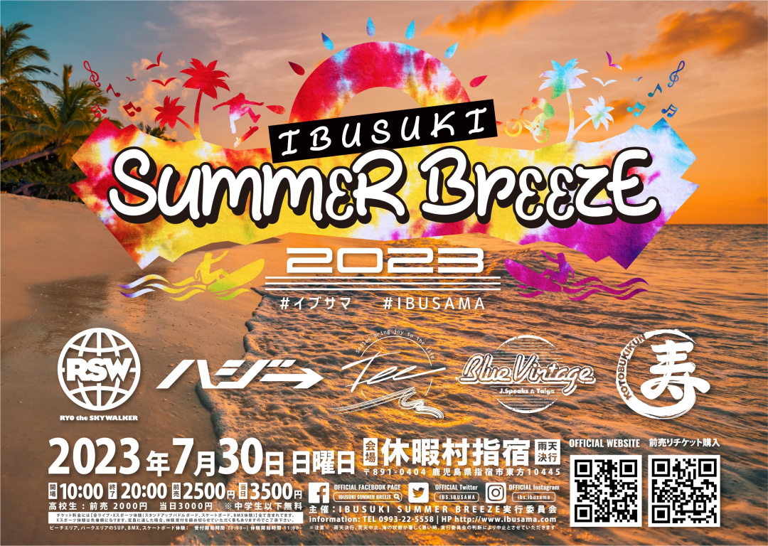 3年ぶりの開催となった「IBUSUKI SUMMER BREEZE2022〜BEACHFREEK〜」に引き続き、鹿児島県指宿市で開催される体験型夏フェス『イブサマ』が今年も開催。TEEやハジ→など、夏、海にぴったりな人気アーティストによるステージや、ビーチではSUP体験(スタンドアップパドルボード)、スケートボードやBMX等のXスポーツ体験が楽しめるイベントとなっております。