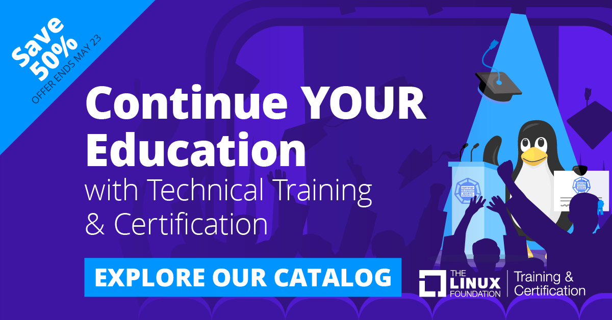 今月はグローバルでは多くの卒業式が行われており、日本では年度始めからひと段落し、これからキャリアを伸ばし続けるために何をするべきか自問するのに良い時期を迎えています。Linux Foundation Training & Certificationは、最大50%割引でキャリアアップを後押しします。11月のサイバーマンデーまで、これ以上の割引の機会はありません。